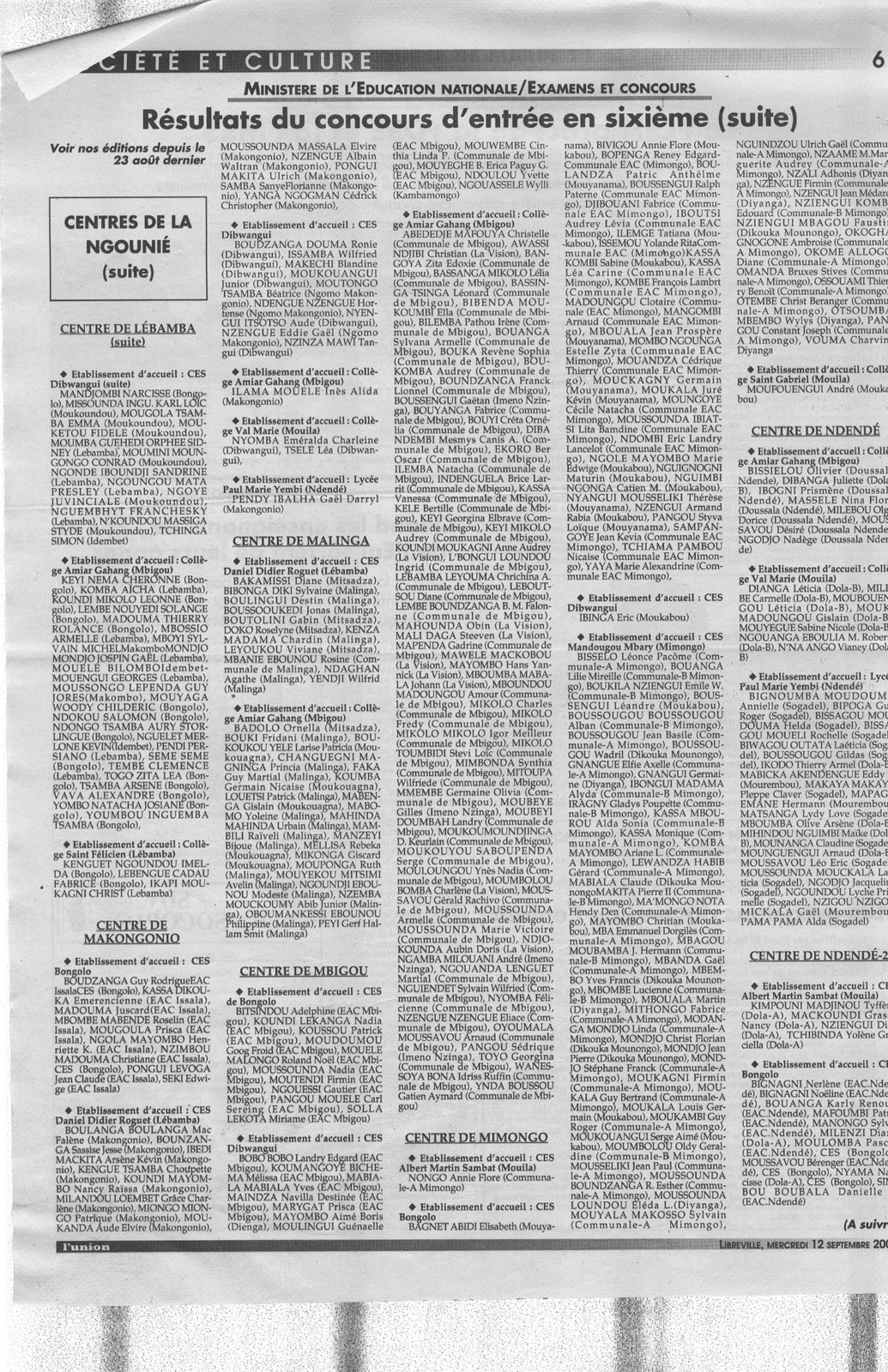 Semaine dernière :
